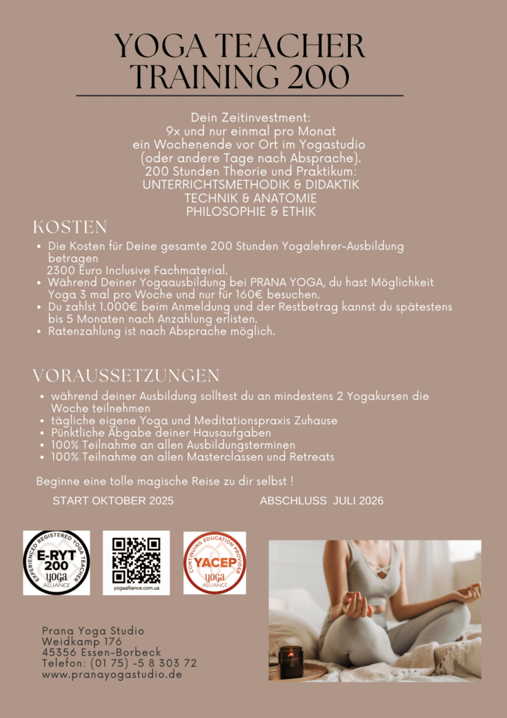 - An mindestens 3 Yogakursen die Woche teilnehmen